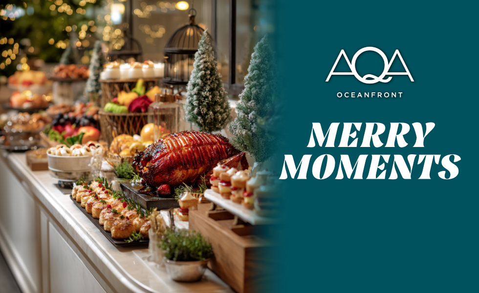 Celebrate Christmas at AQA Oceanfront with a festive brunch buffet filled with fresh flavors, flowing bubbles, and endless ocean views.